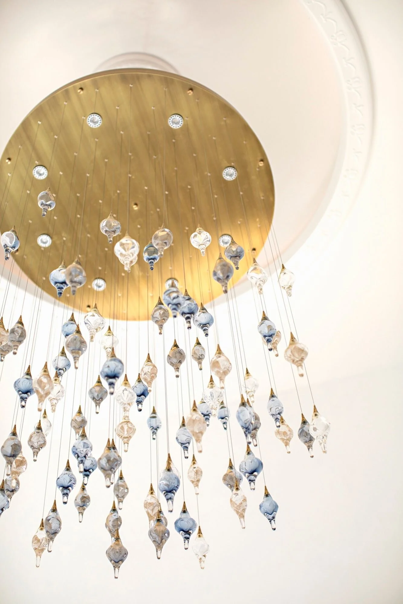 For tall ceilings, a statement chandelier will bring some interest and balance the space.