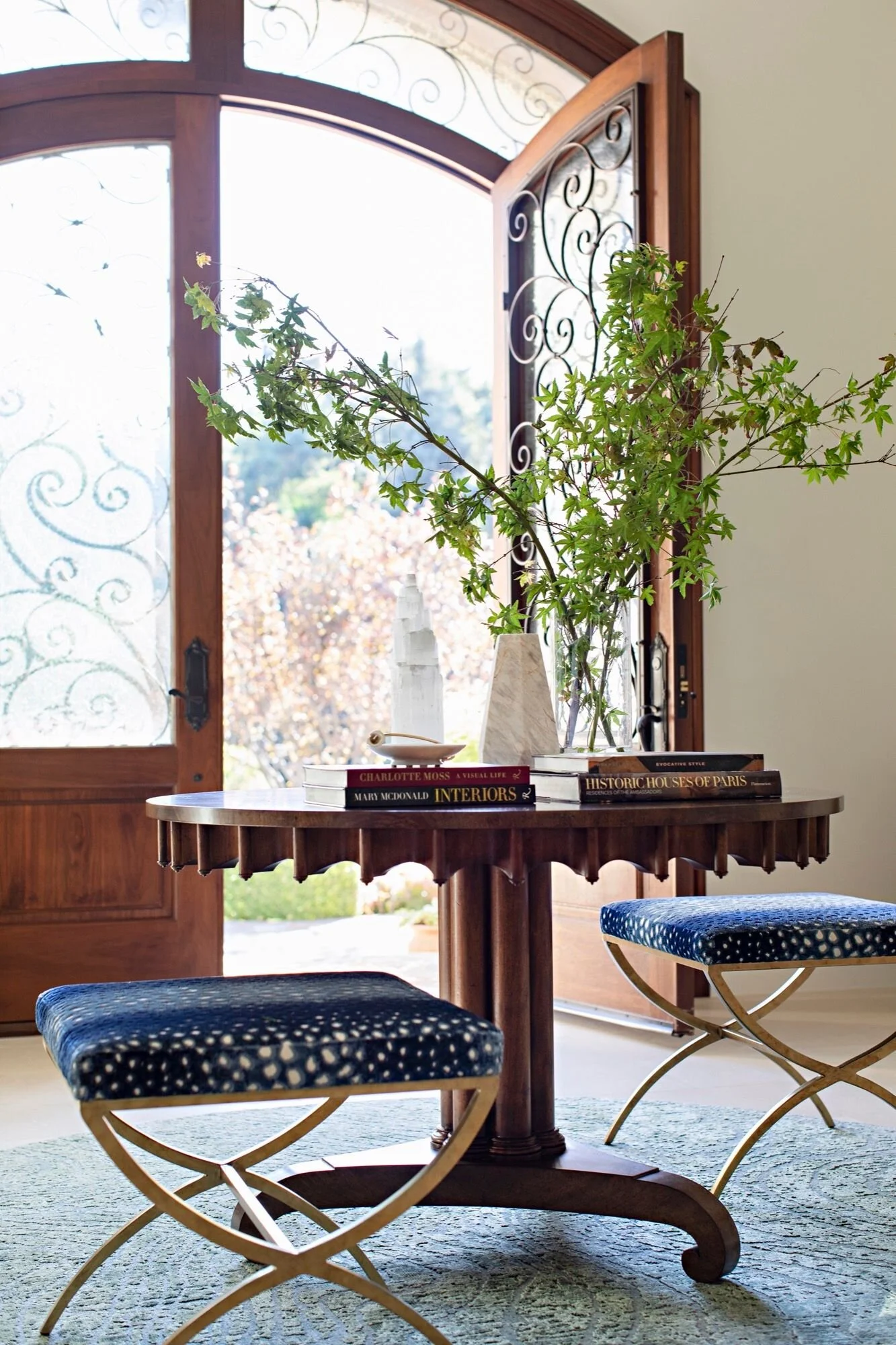 Stacking books and pairing them with vases, bowls, or plates are a great way to dress the entry table.